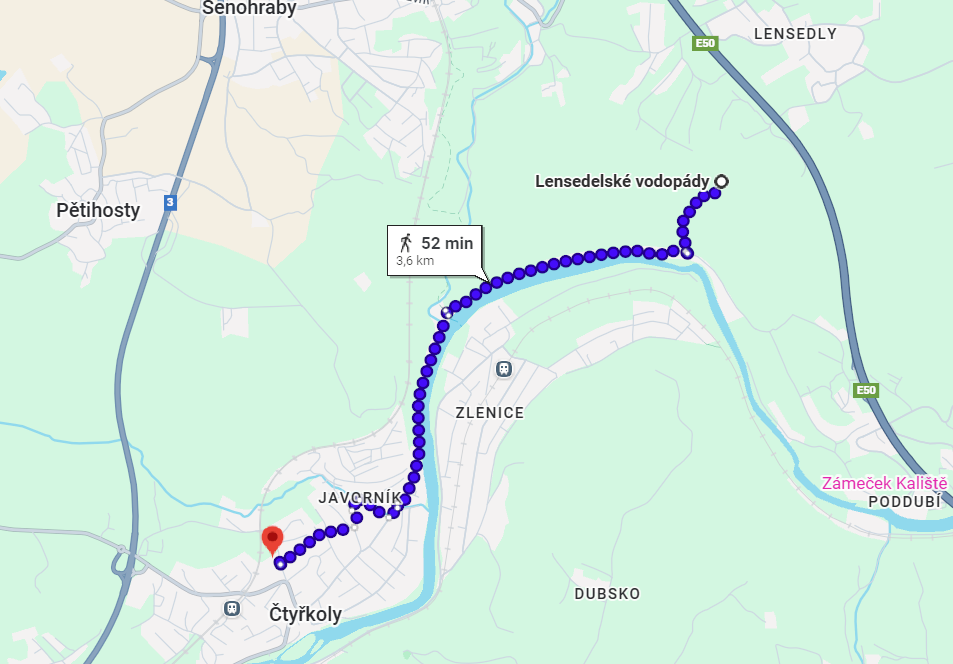 Ondřejov → Lensedelské vodopády (9 min)