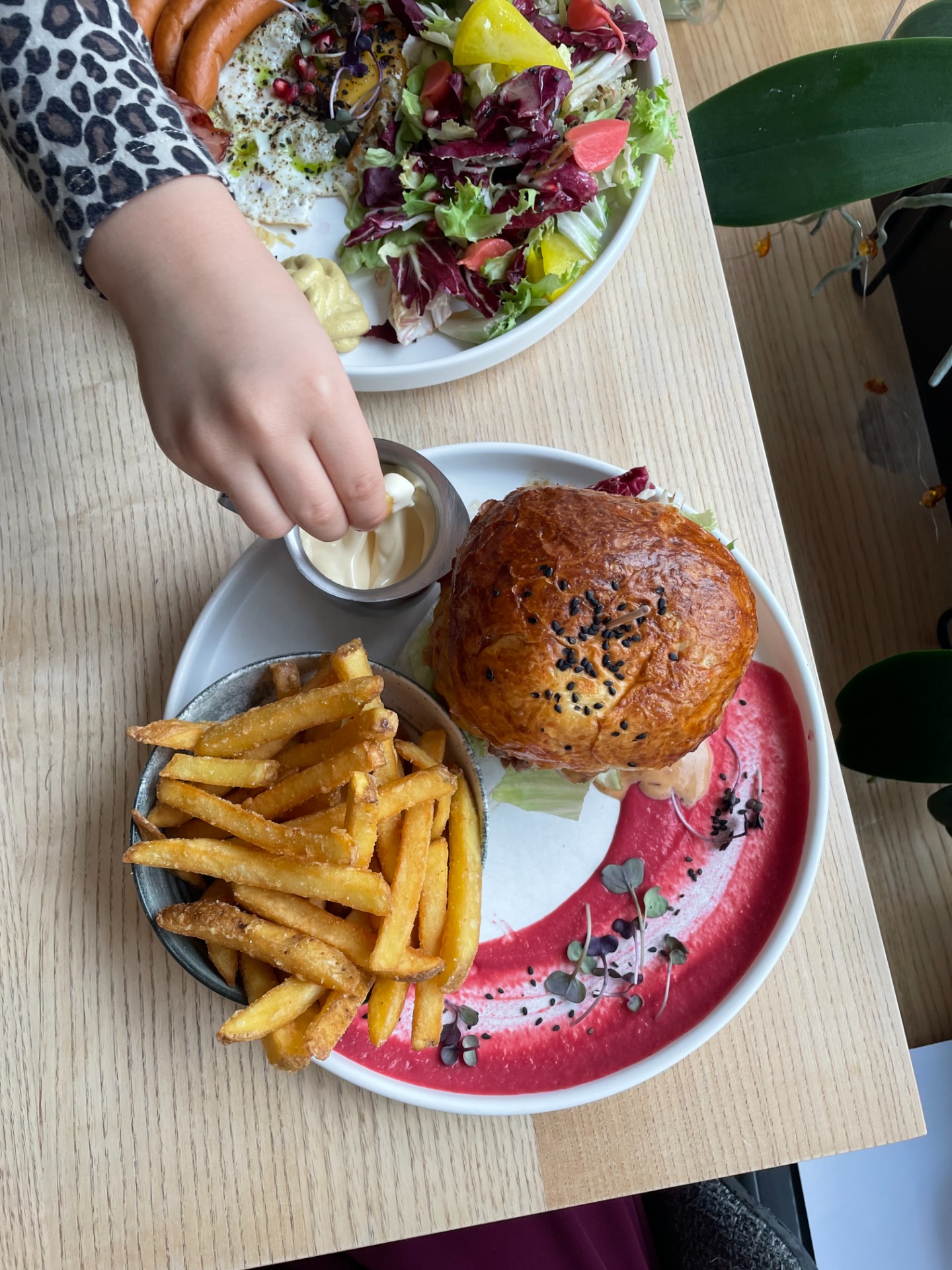 oběd v podobě burgerů a bistro jídel